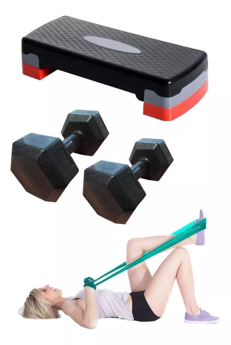Step Aeróbico + Mancuernas Forradas 2kg + Banda Pilates cantidad